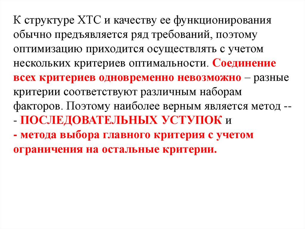 К структуре ХТС и качеству ее функционированияобычно предъявляется ряд требований, поэтому