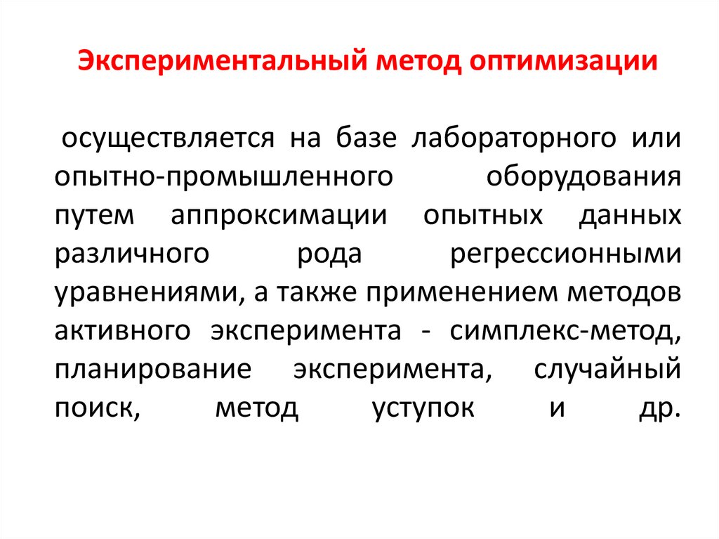 Экспериментальный метод оптимизацииосуществляется на базе лабораторного или