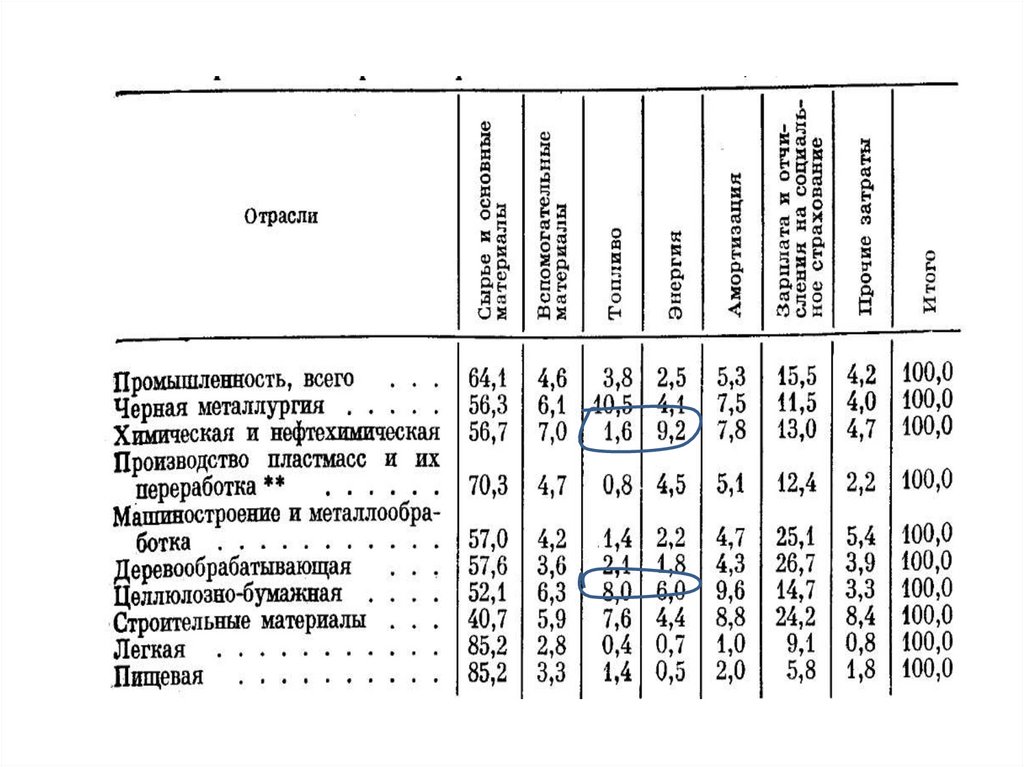 расходы сырья, электроэнергии и тепла.