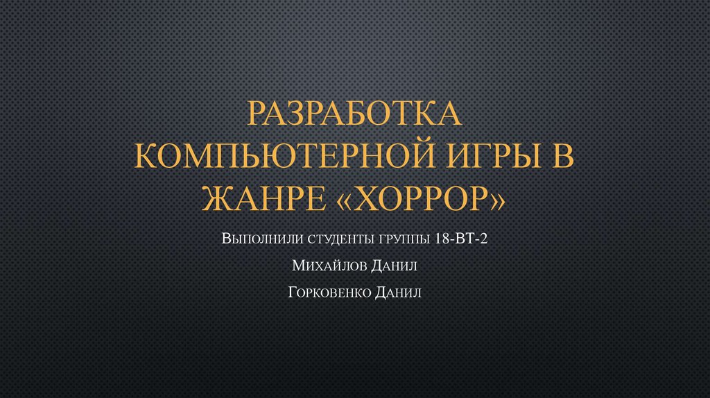 1. РАЗРАБОТКА КОМПЬЮТЕРНОЙ ИГРЫ В ЖАНРЕ «ХОРРОР»