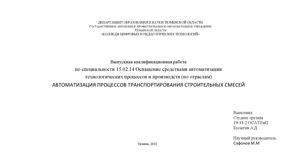 ДЕПАРТАМЕНТ ОБРАЗОВАНИЯ И НАУКИ ТЮМЕНСКОЙ ОБЛАСТИГОСУДАРСТВЕННОЕ АВТОНОМНОЕ ПРОФЕССИОНАЛЬНОЕ ОБРАЗОВАТЕЛЬНОЕ УЧРЕЖДЕНИЕ