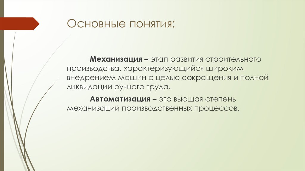Основные понятия:Механизация – этап развития строительного