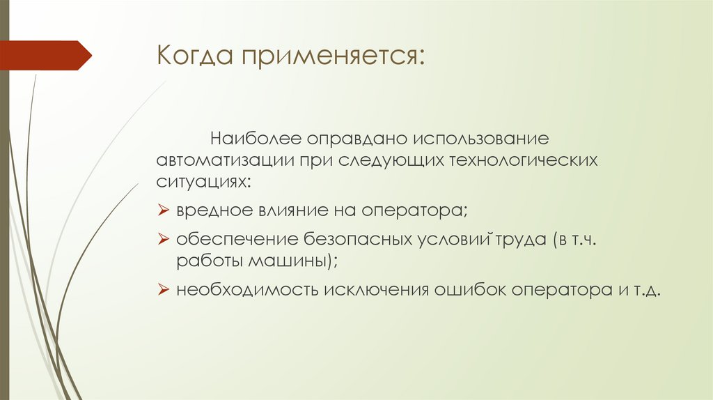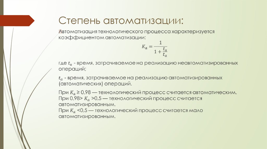 автоматизации при следующих технологических