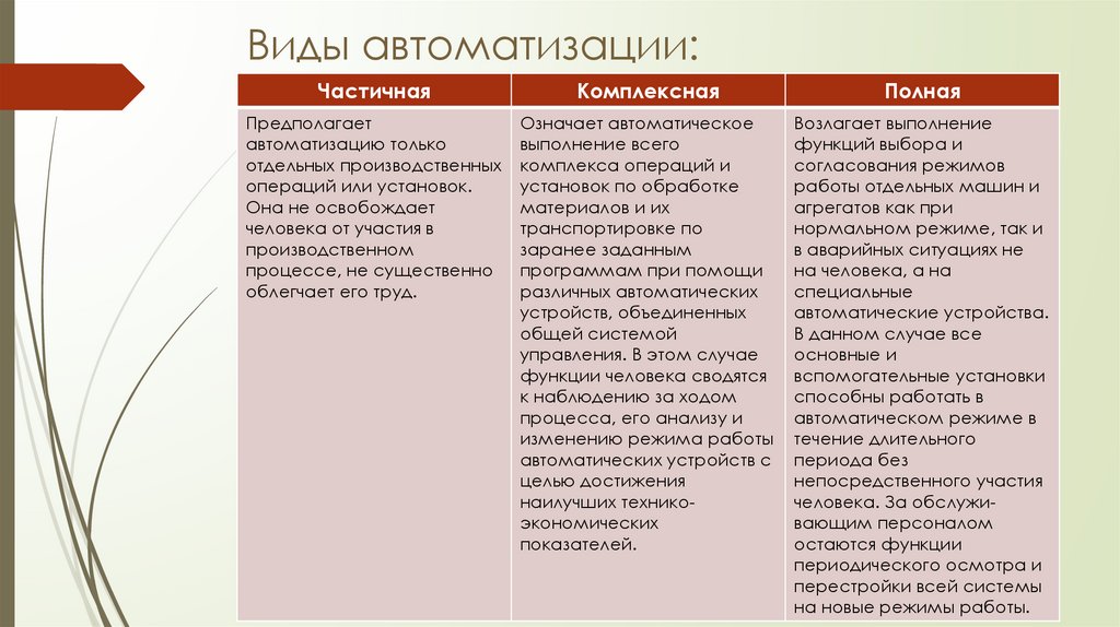 Виды автоматизации:Частичная