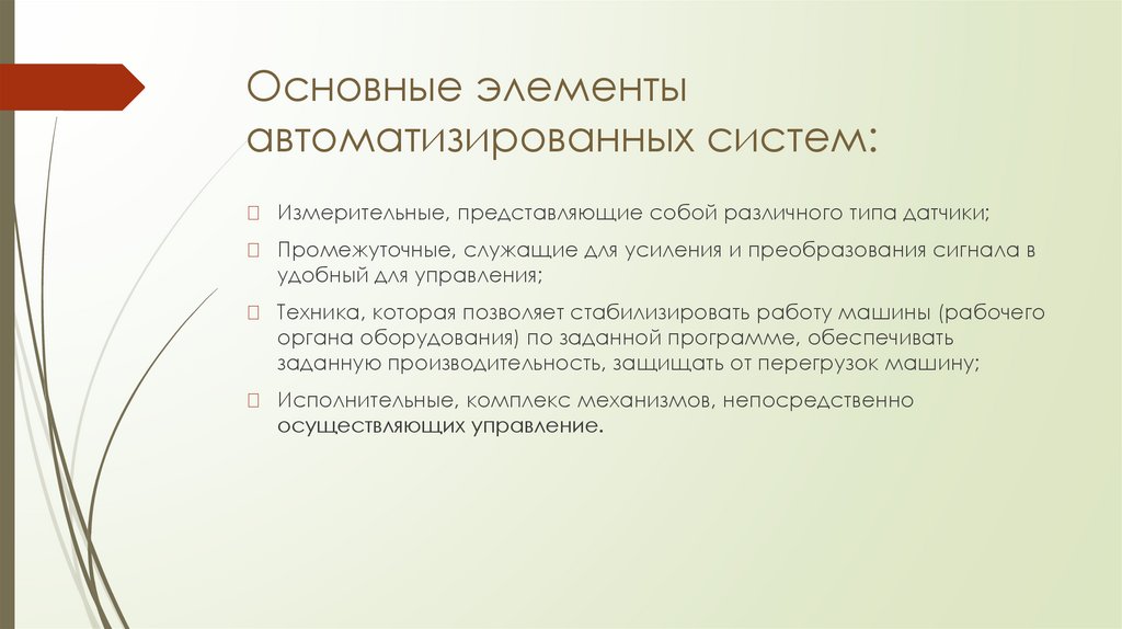 Основные элементыавтоматизированных систем: