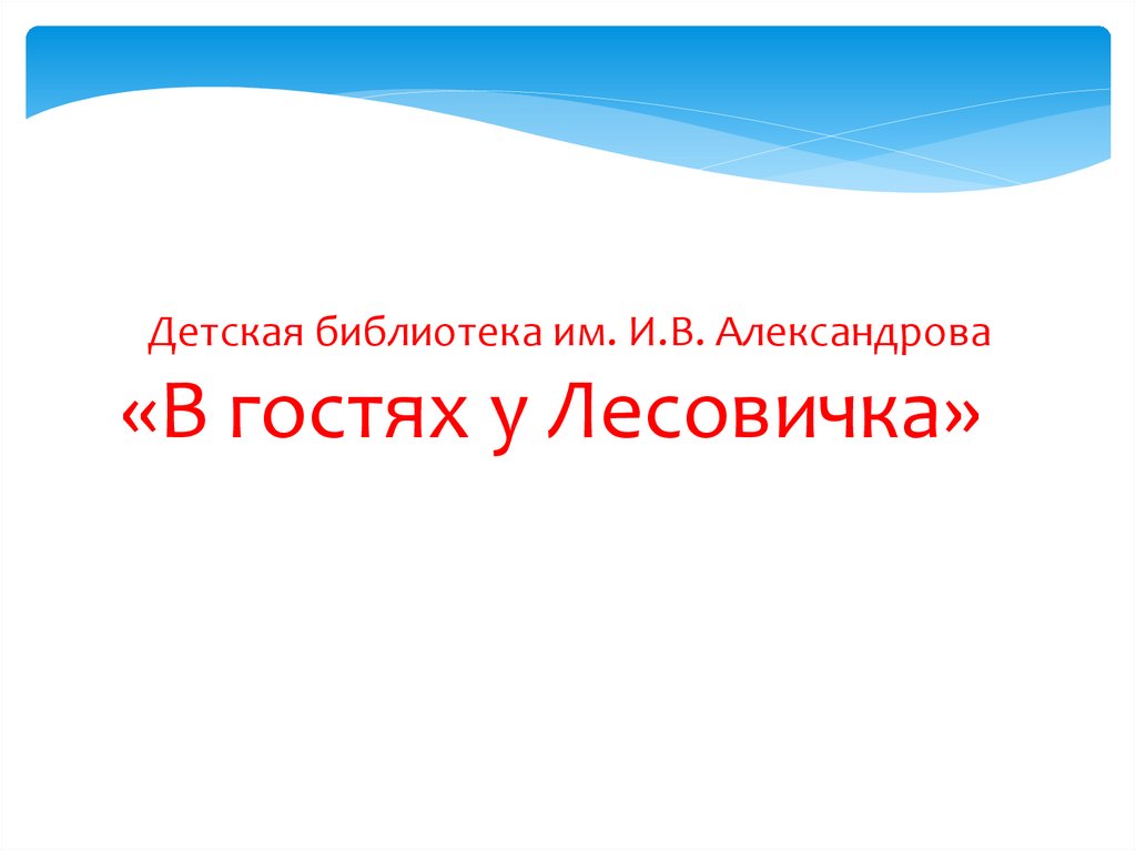 1. Детская библиотека им. И.В. Александрова «В гостях у Лесовичка»»