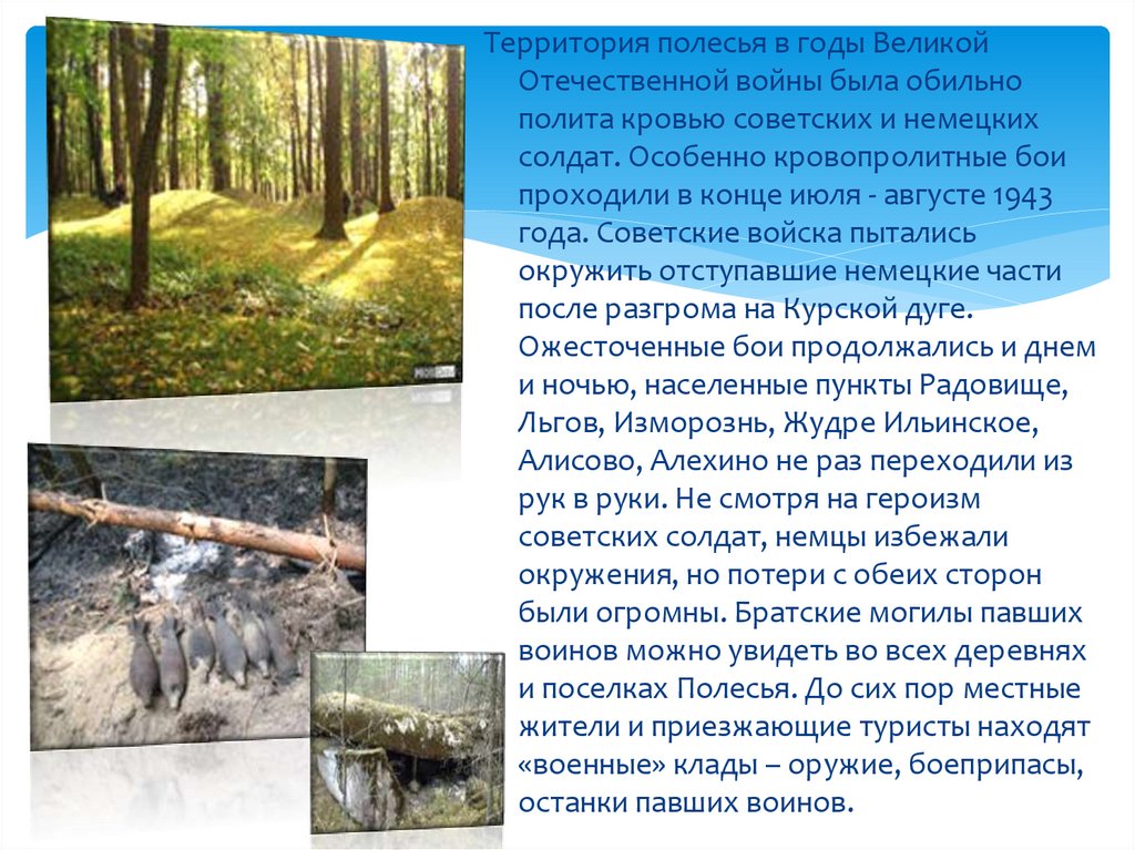 Территория полесья в годы ВеликойОтечественной войны была обильно