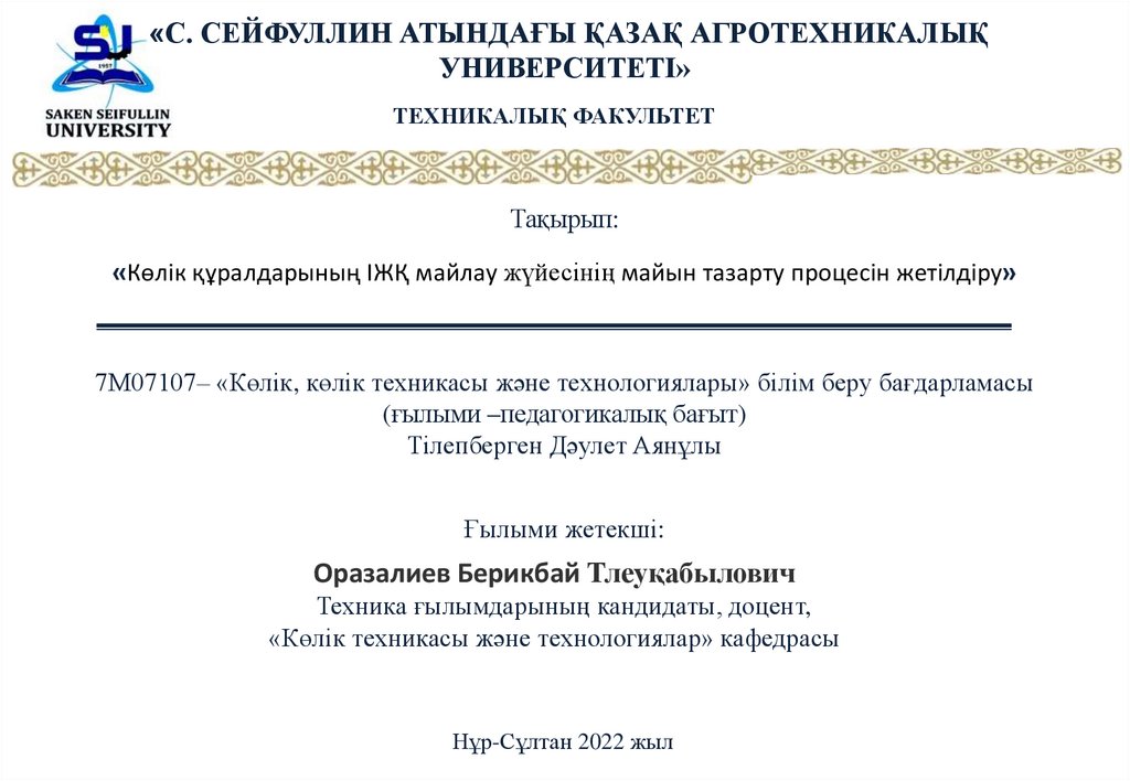 «С. СЕЙФУЛЛИН АТЫНДАҒЫ ҚАЗАҚ АГРОТЕХНИКАЛЫҚУНИВЕРСИТЕТІ»