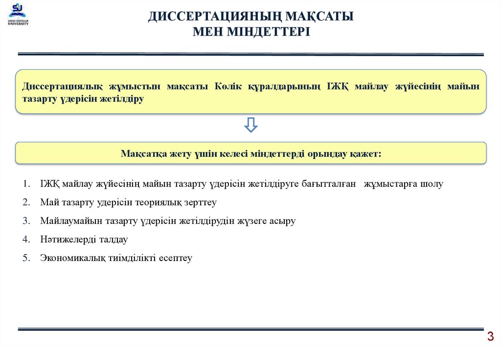 Диссертациялық жұмыстын мақсаты Көлік құралдарының ІЖҚ майлау жүйесінің майын
