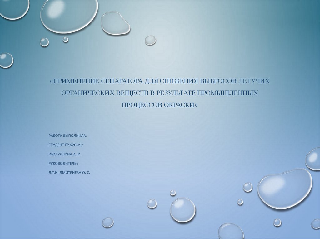 «ПРИМЕНЕНИЕ СЕПАРАТОРА ДЛЯ СНИЖЕНИЯ ВЫБРОСОВ ЛЕТУЧИХОРГАНИЧЕСКИХ ВЕЩЕСТВ В РЕЗУЛЬТАТЕ ПРОМЫШЛЕННЫХ