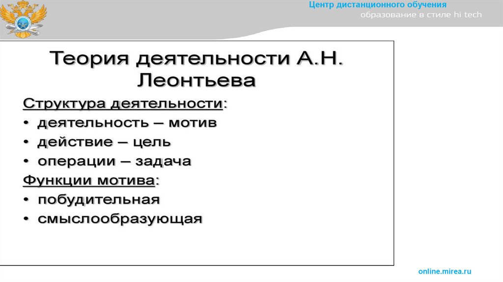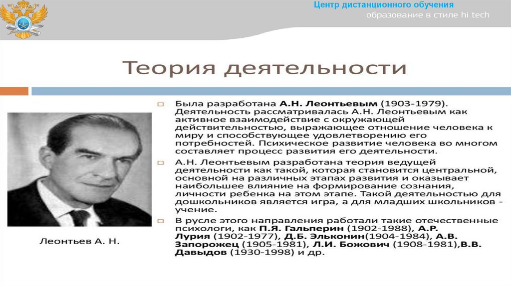 1. Тема 3. Психологическая теория деятельности