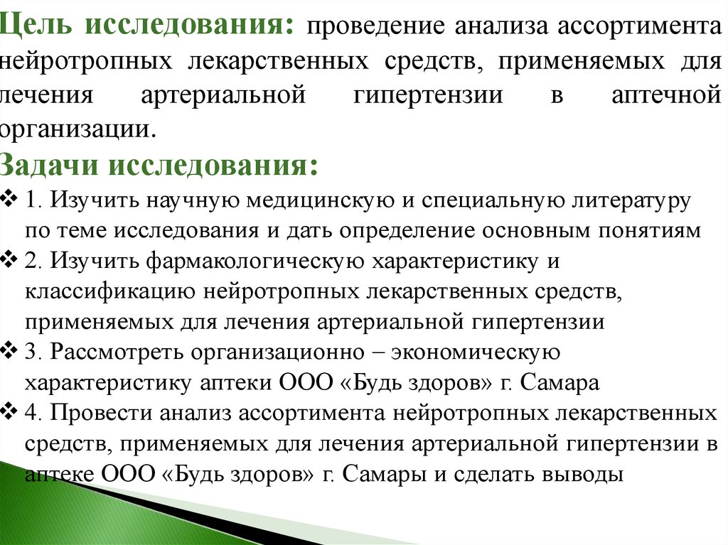 Исследование ассортимента нейротропных лекарственных средств, применяемых для лечения артериальной гипертензии
