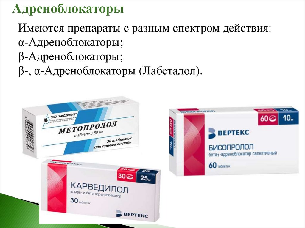 АдреноблокаторыИмеются препараты с разным спектром действия: