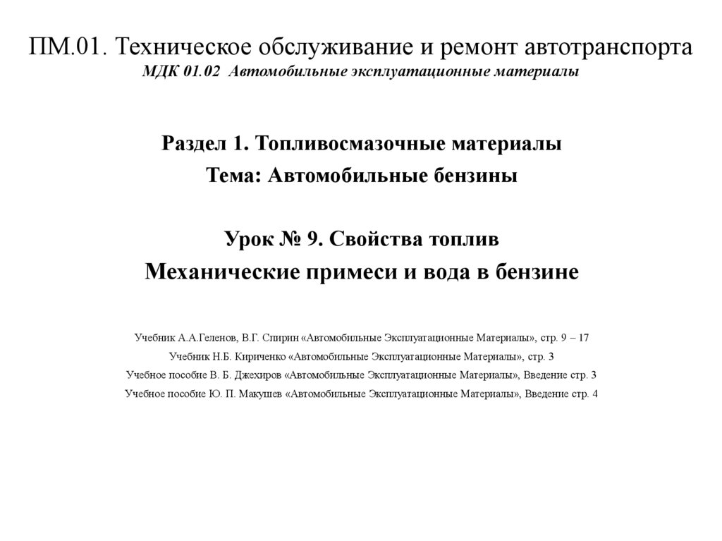 ПМ.01. Техническое обслуживание и ремонт автотранспортаМДК 01.02 Автомобильные эксплуатационные материалы