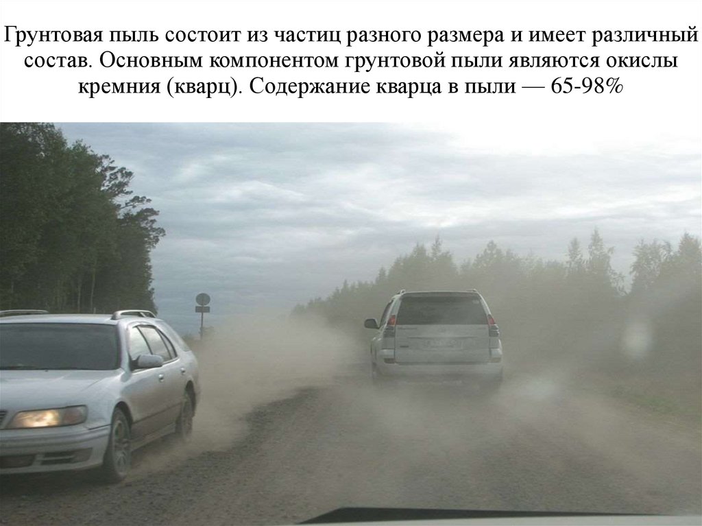 Грунтовая пыль состоит из частиц разного размера и имеет различныйсостав. Основным компонентом грунтовой пыли являются окислы