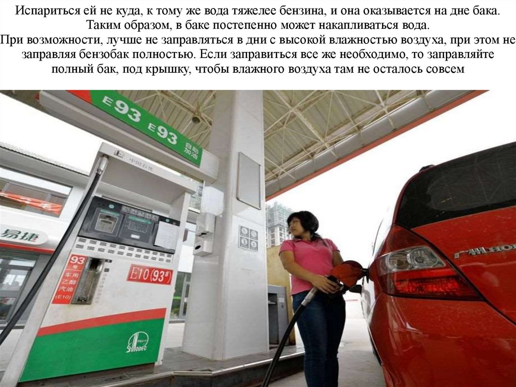 При возможности, лучше не заправляться в дни с высокой влажностью воздуха, при этом не