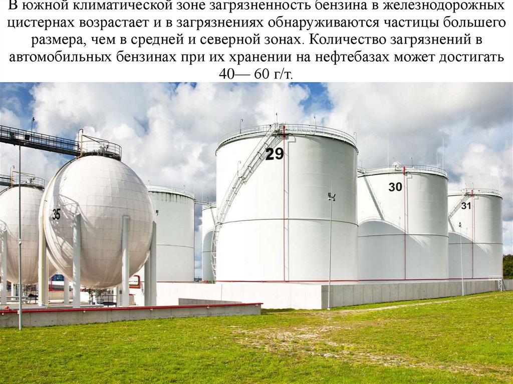 В южной климатической зоне загрязненность бензина в железнодорожныхцистернах возрастает и в загрязнениях обнаруживаются частицы большего