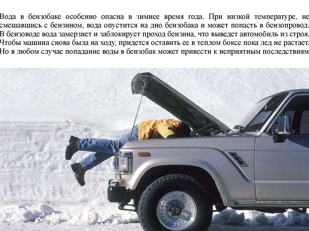 Но в любом случае попадание воды в бензобак может привести к неприятным последствиям
