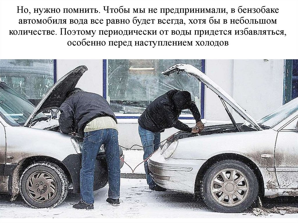 Но, нужно помнить. Чтобы мы не предпринимали, в бензобакеавтомобиля вода все равно будет всегда, хотя бы в небольшом