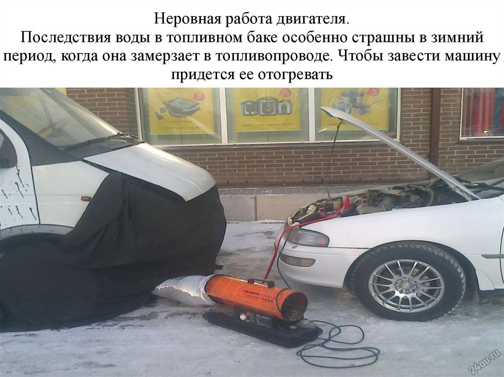 Неровная работа двигателя.Последствия воды в топливном баке особенно страшны в зимний