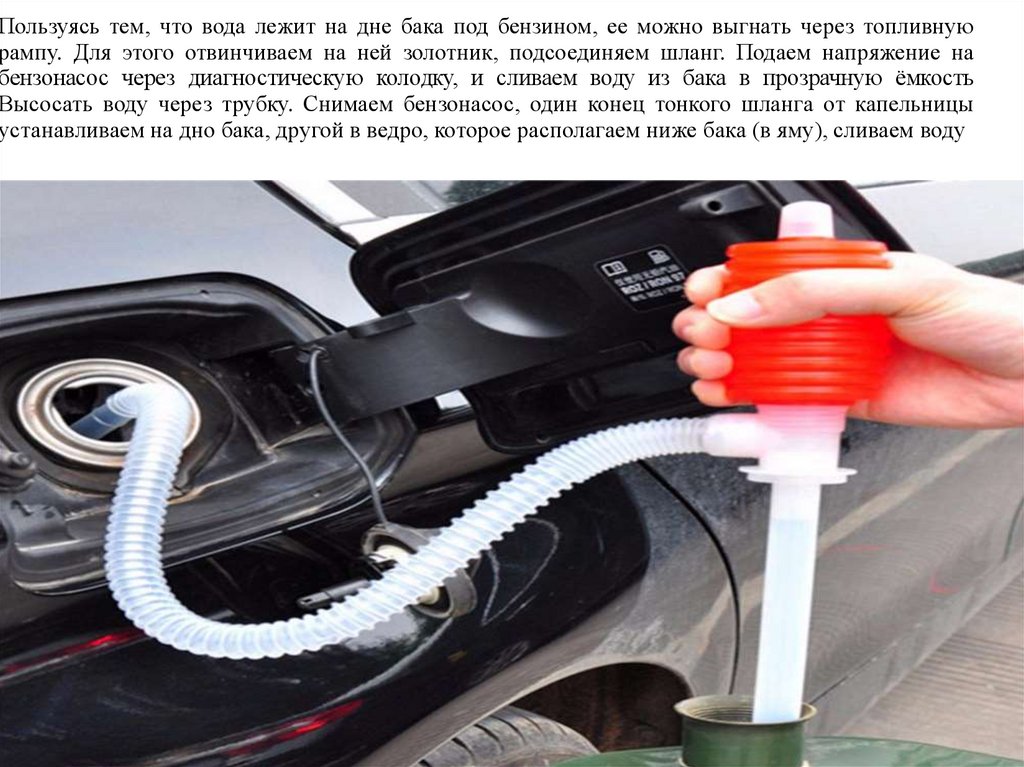 Таким образом, для удаления воды из бензобака есть 3 способа: