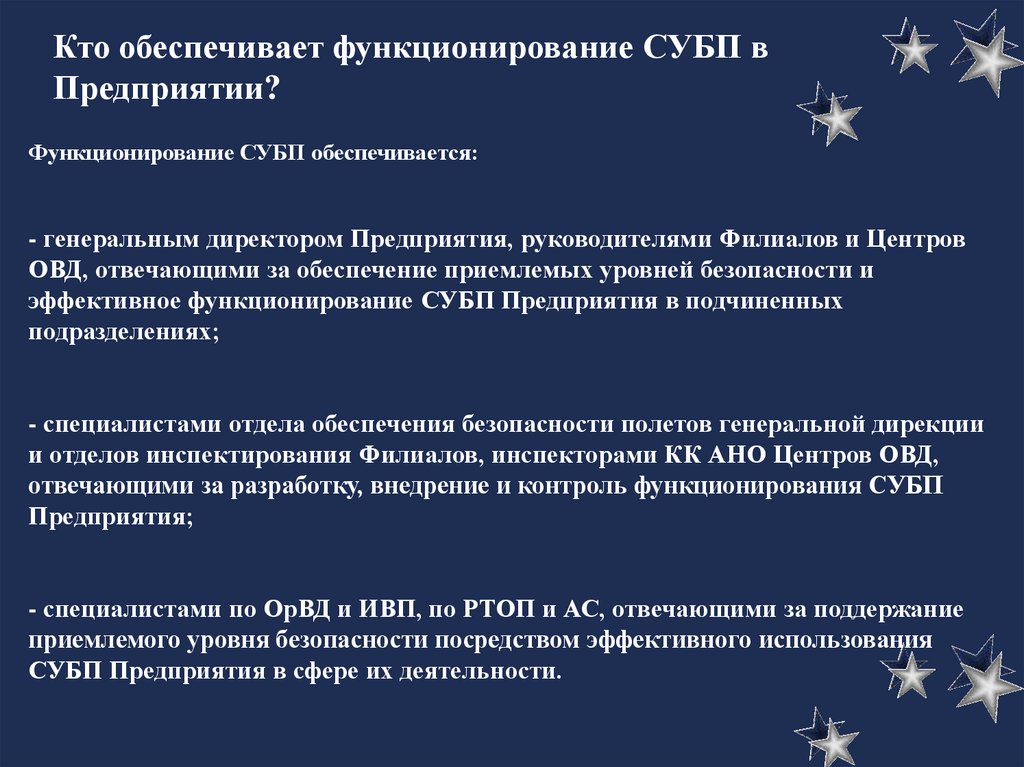 Кто обеспечивает функционирование СУБП вПредприятии?