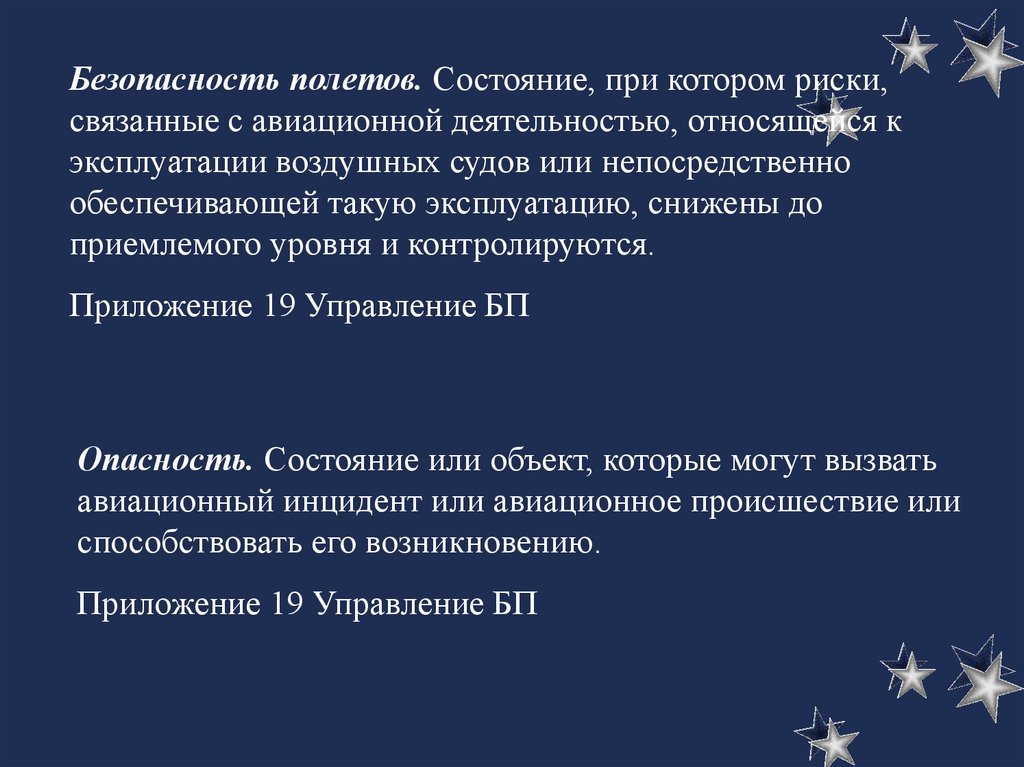 Безопасность полетов. Состояние, при котором риски,связанные с авиационной деятельностью, относящейся к