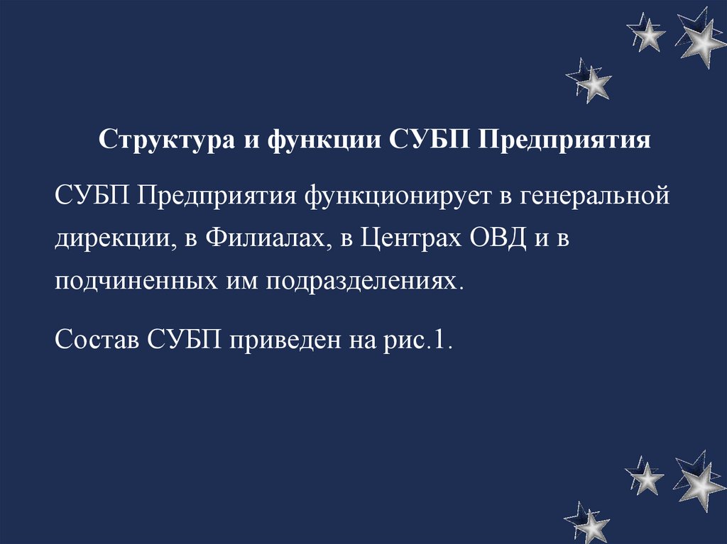 Структура и функции СУБП ПредприятияСУБП Предприятия функционирует в генеральной