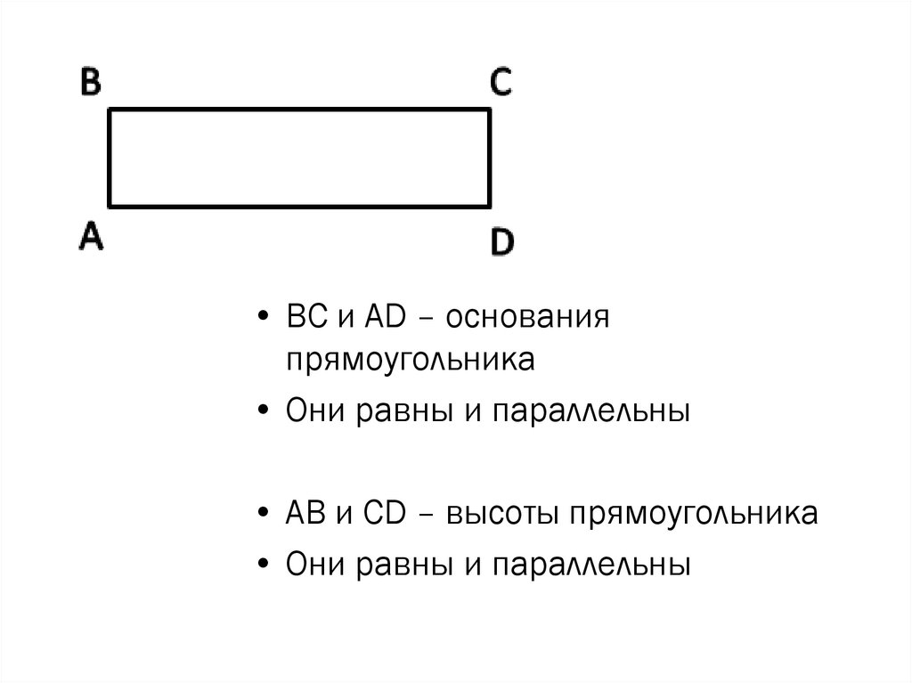 А, В, С, D – вершиныАВ, ВС, СD, AD – стороны