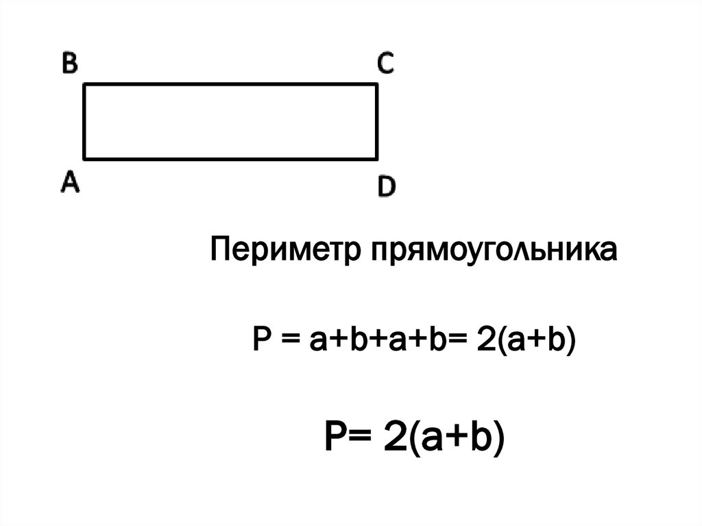 Периметр прямоугольникаР = а+b+a+b= 2(a+b)