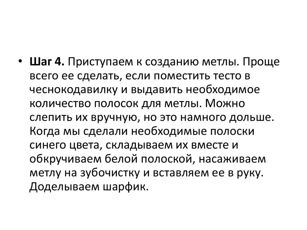 • Шаг 4. Приступаем к созданию метлы. Прощевсего ее сделать, если поместить тесто в