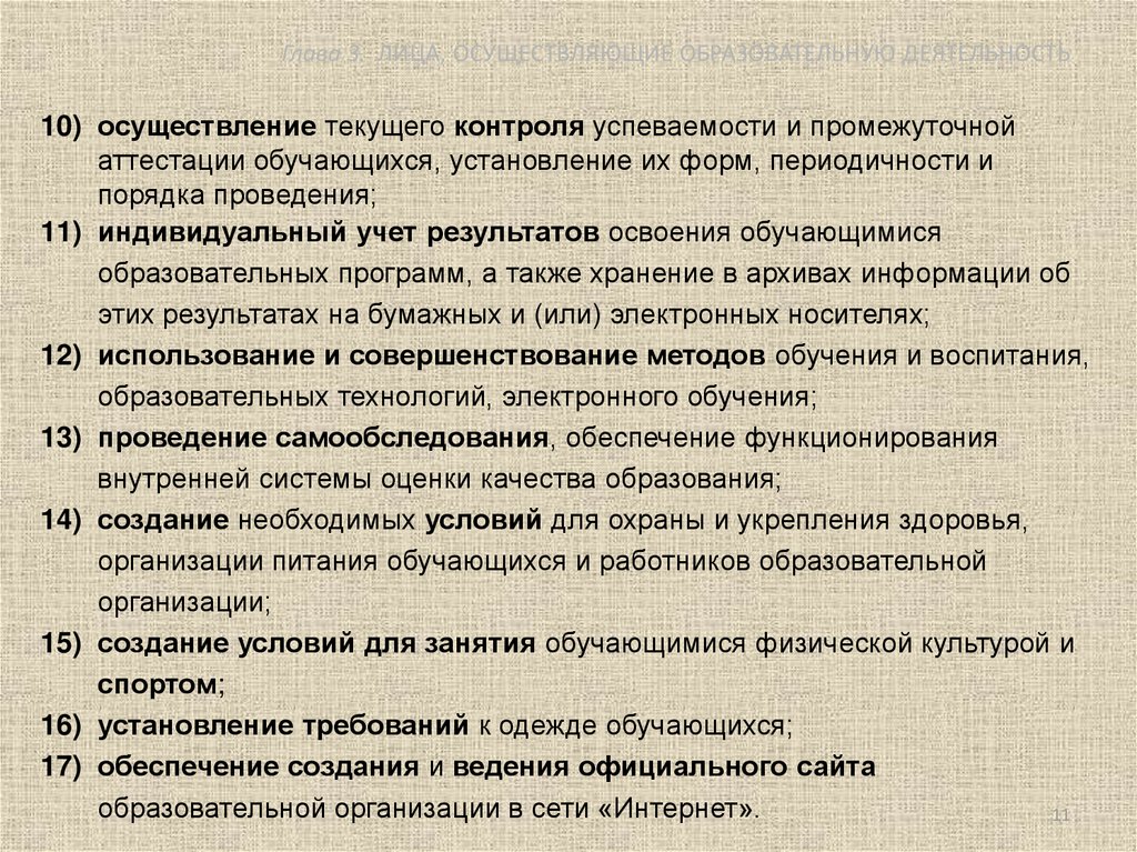 Глава 3. ЛИЦА, ОСУЩЕСТВЛЯЮЩИЕ ОБРАЗОВАТЕЛЬНУЮ ДЕЯТЕЛЬНОСТЬК компетенции образовательной организации в установленной сфере