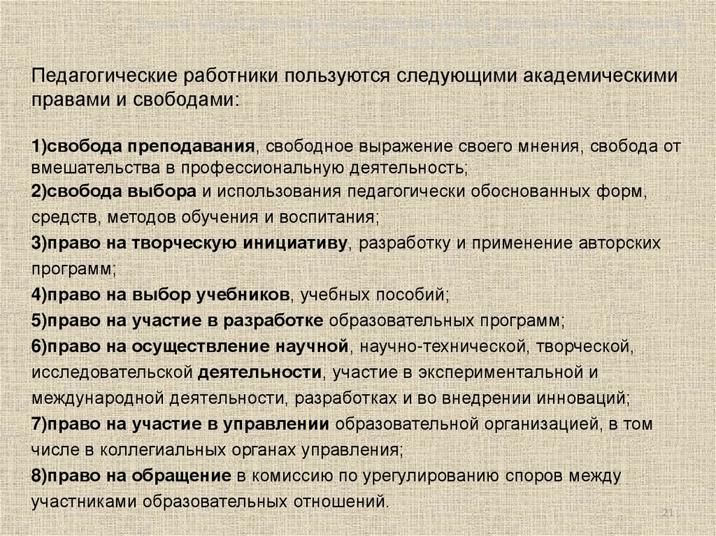 1)свобода преподавания, свободное выражение своего мнения, свобода от