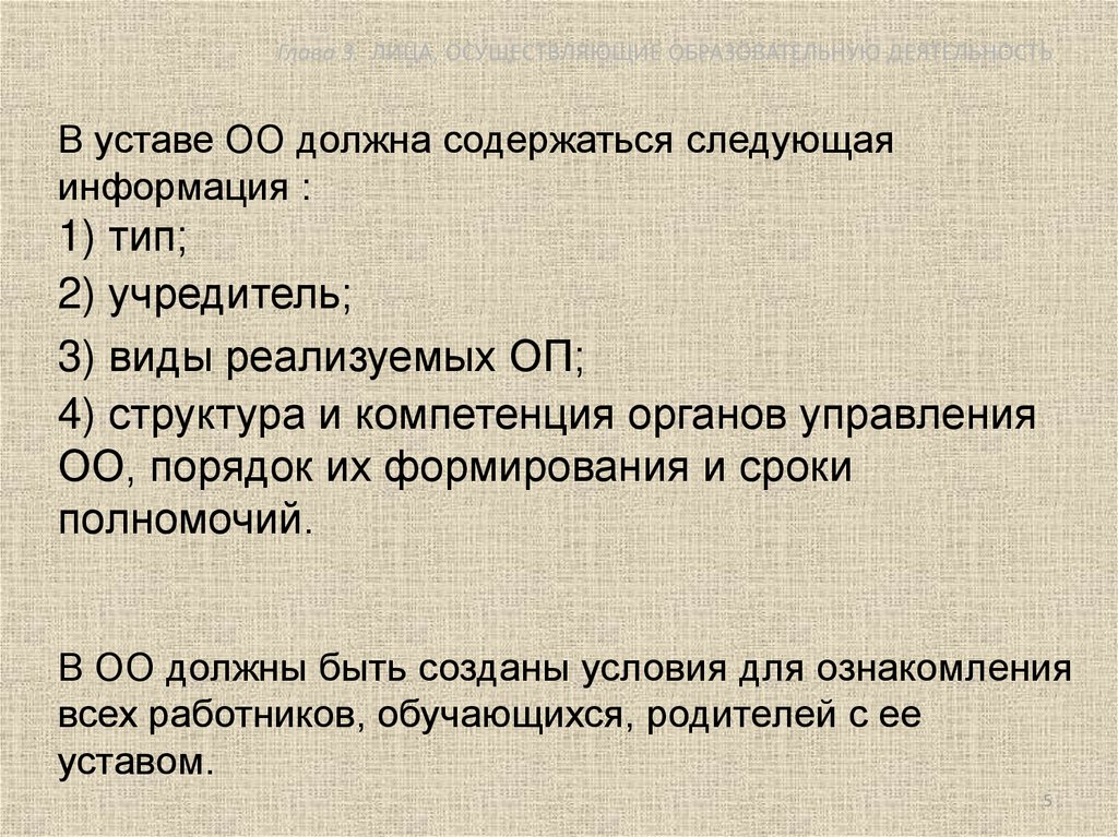 Глава 3. ЛИЦА, ОСУЩЕСТВЛЯЮЩИЕ ОБРАЗОВАТЕЛЬНУЮ ДЕЯТЕЛЬНОСТЬВ уставе ОО должна содержаться следующая