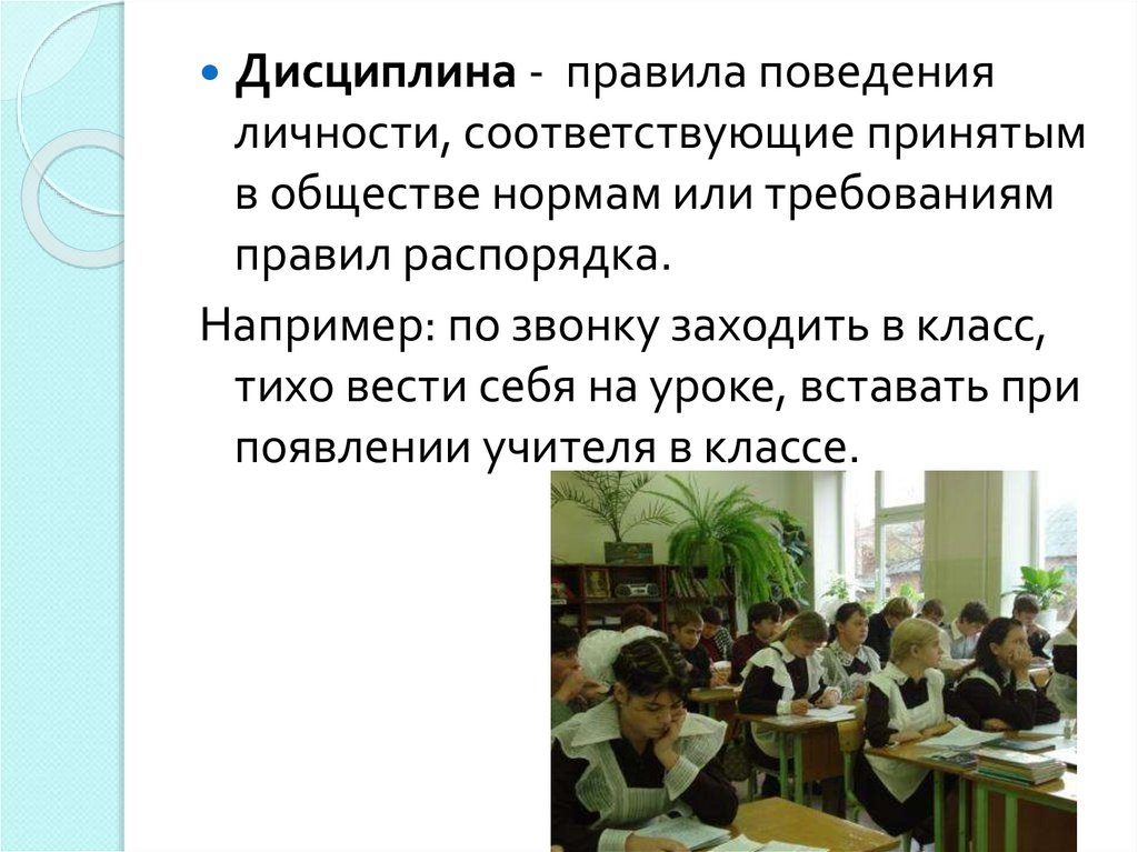 Дисциплина - правила поведенияличности, соответствующие принятым