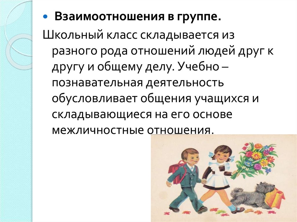 Взаимоотношения в группе.Школьный класс складывается из