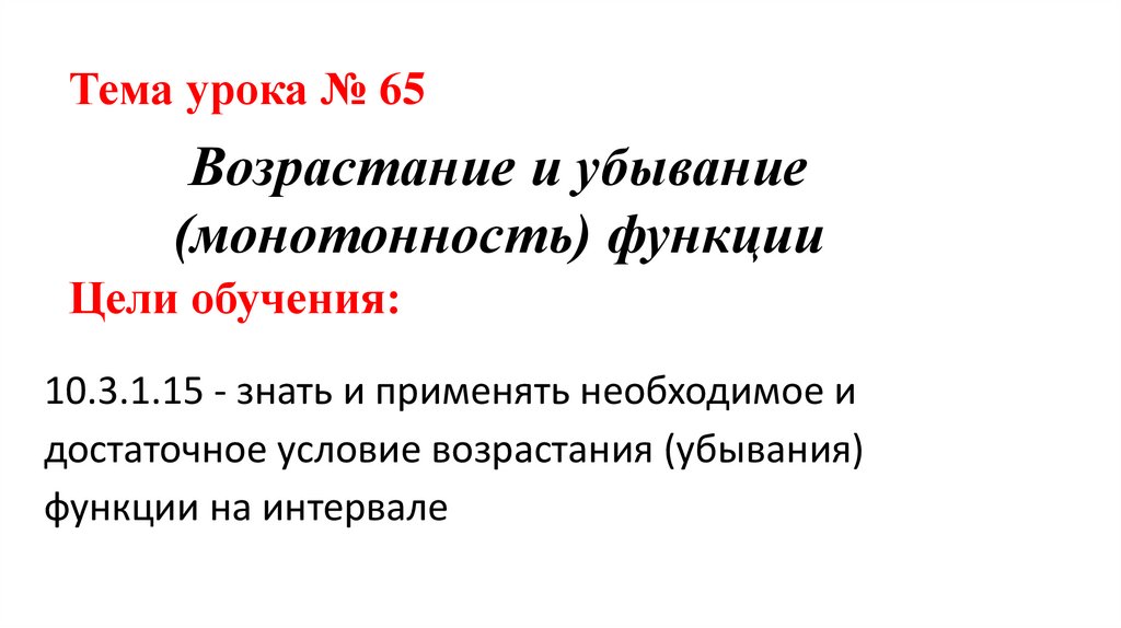 Тема урока № 65Возрастание и убывание