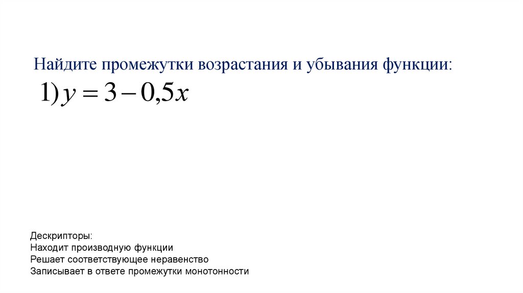 Найдите промежутки возрастания и убывания функции:1) у 3 0,5 х