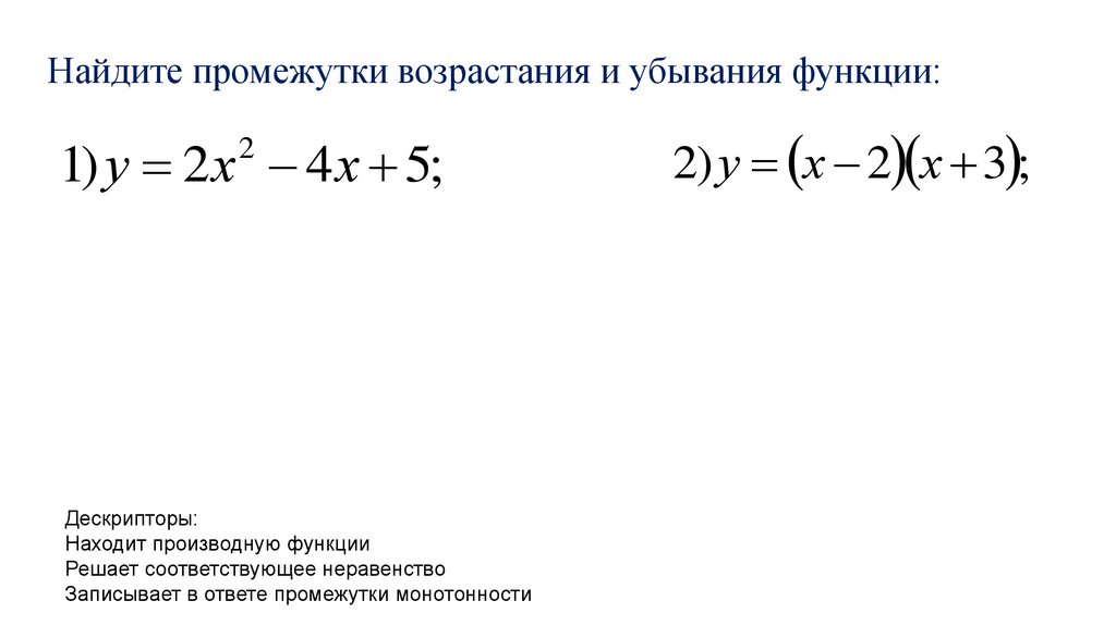 Найдите промежутки возрастания и убывания функции:1) у 2 х 4 х 5;