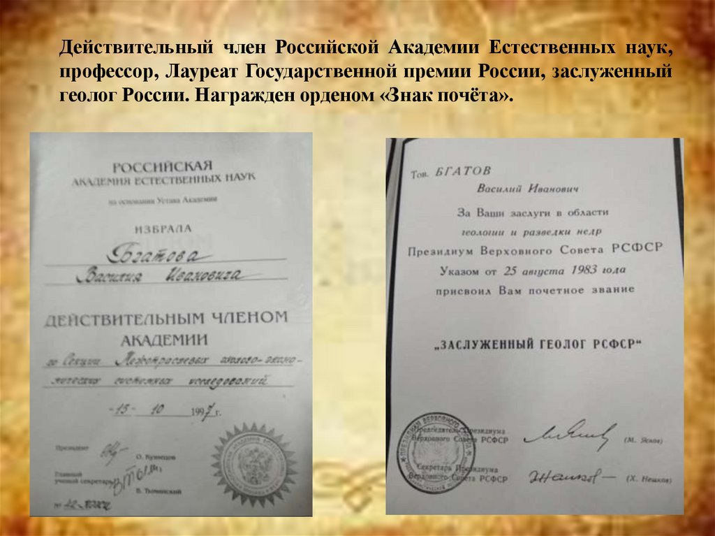 Действительный член Российской Академии Естественных наук,профессор, Лауреат Государственной премии России, заслуженный