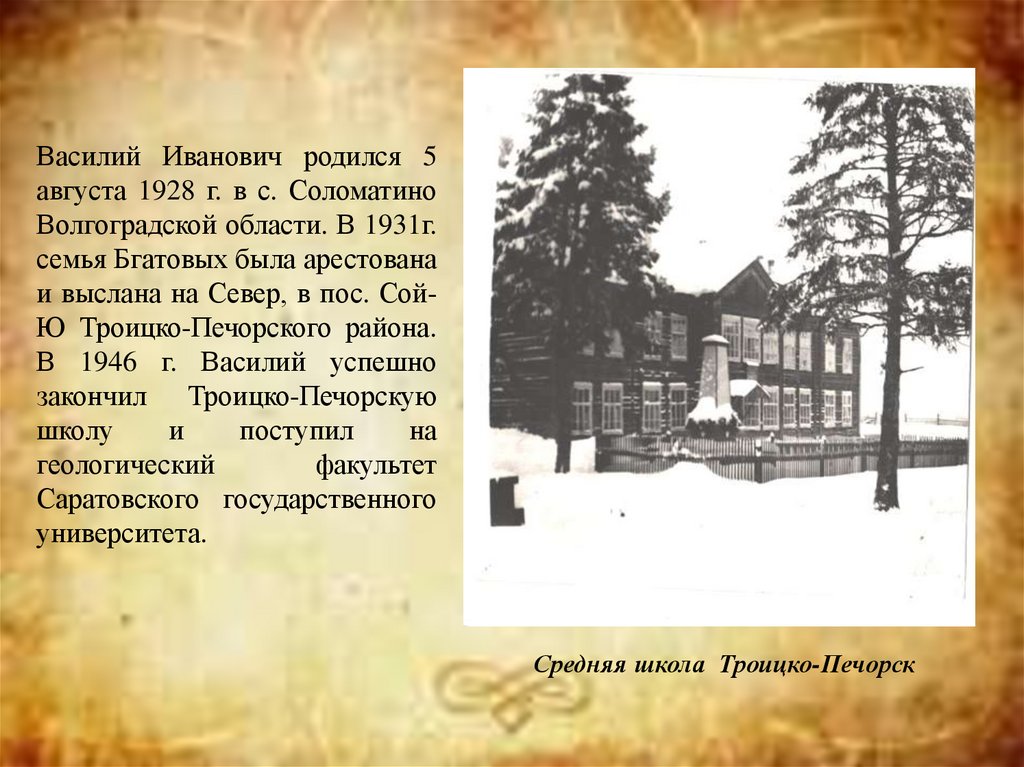 Василий Иванович родился 5августа 1928 г. в с. Соломатино
