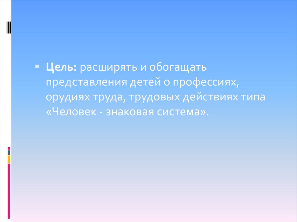 Цель: расширять и обогащатьпредставления детей о профессиях,