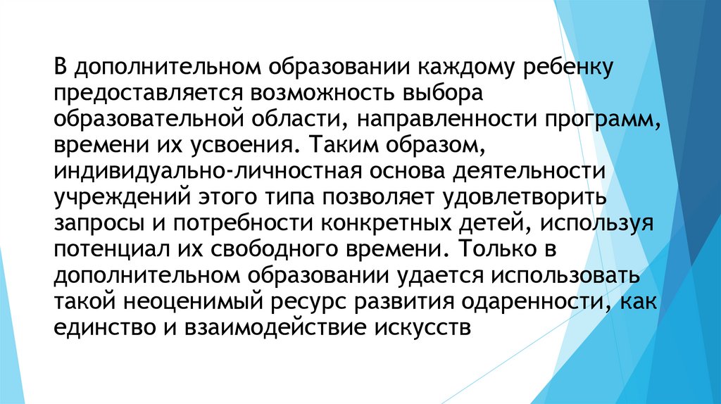 В дополнительном образовании каждому ребенкупредоставляется возможность выбора