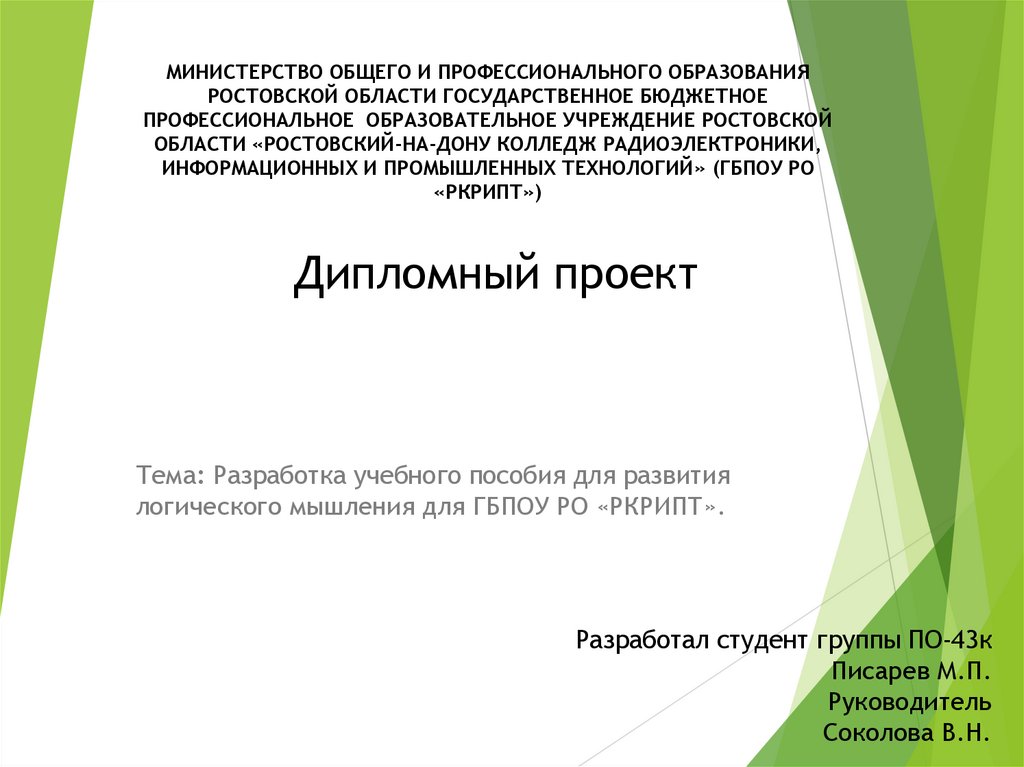 Разработка учебного пособия для развития логического мышления для ГБПОУ РО «РКРИПТ»