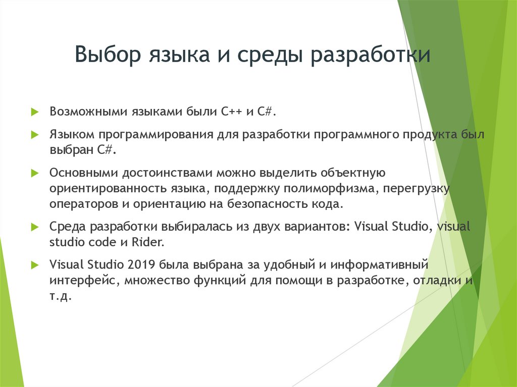 Выбор языка и среды разработкиВозможными языками были C++ и C#.