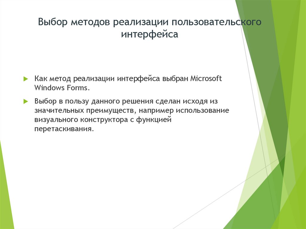 Выбор методов реализации пользовательскогоинтерфейса