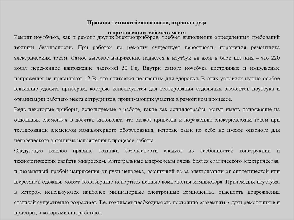 техники безопасности. При работах по ремонту существует вероятность поражения ремонтника