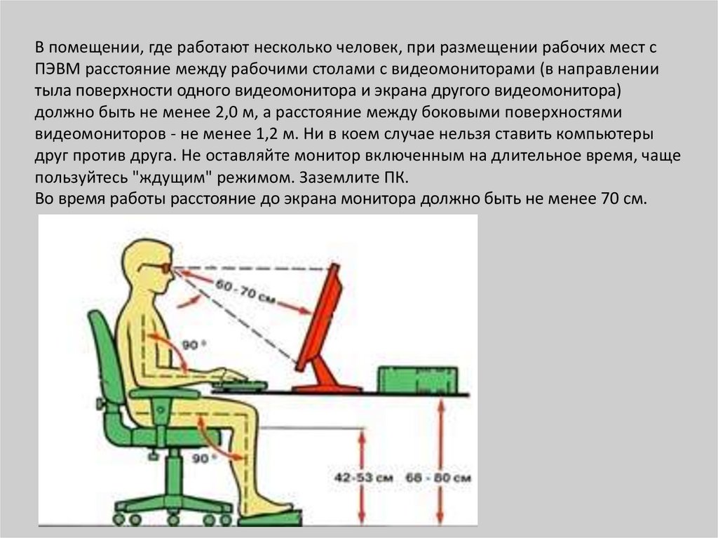 Во время работы расстояние до экрана монитора должно быть не менее 70 см.