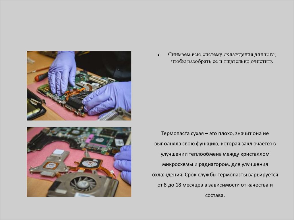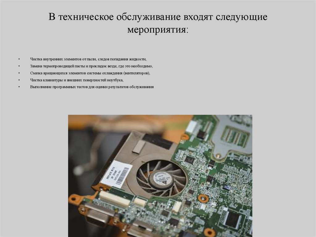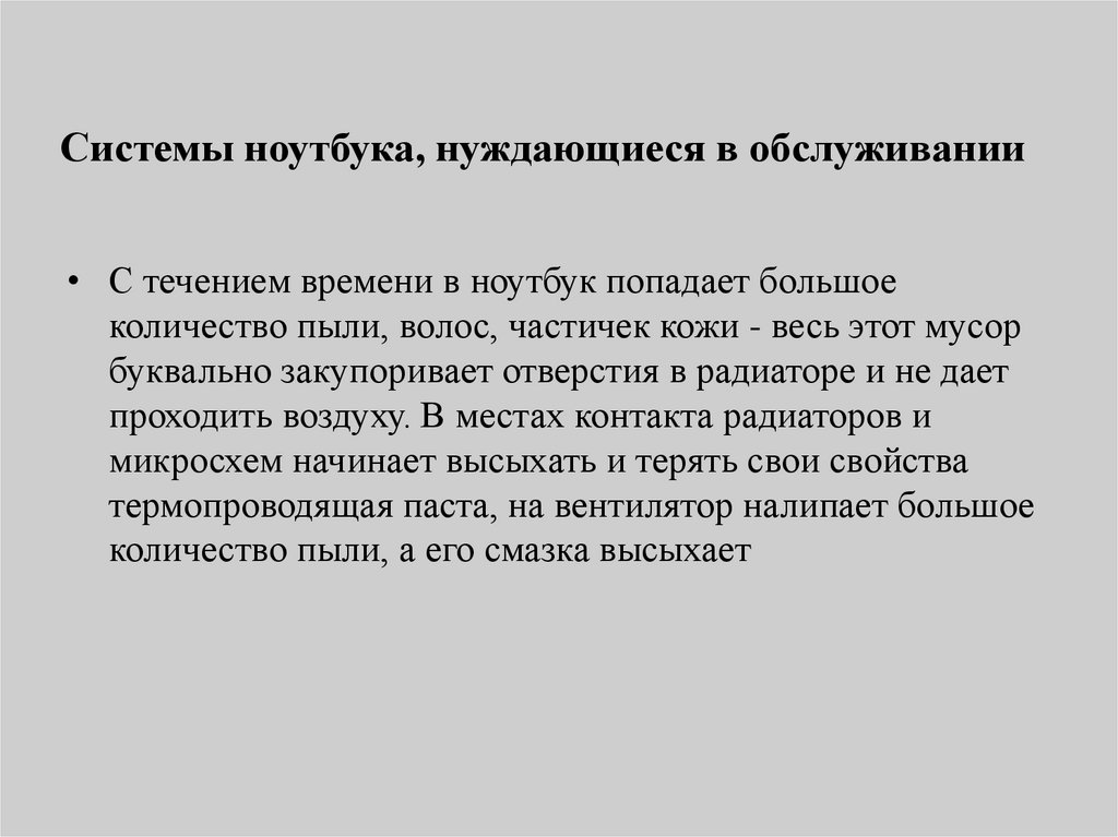 Системы ноутбука, нуждающиеся в обслуживании• С течением времени в ноутбук попадает большое