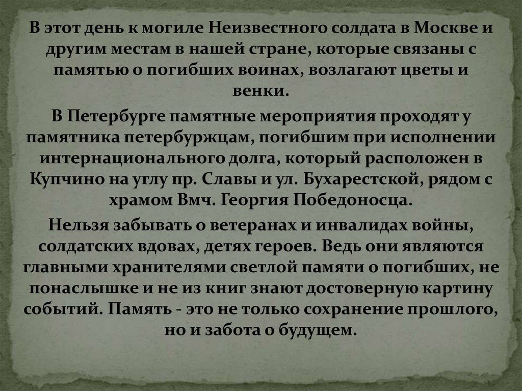 В этот день к могиле Неизвестного солдата в Москве идругим местам в нашей стране, которые связаны с